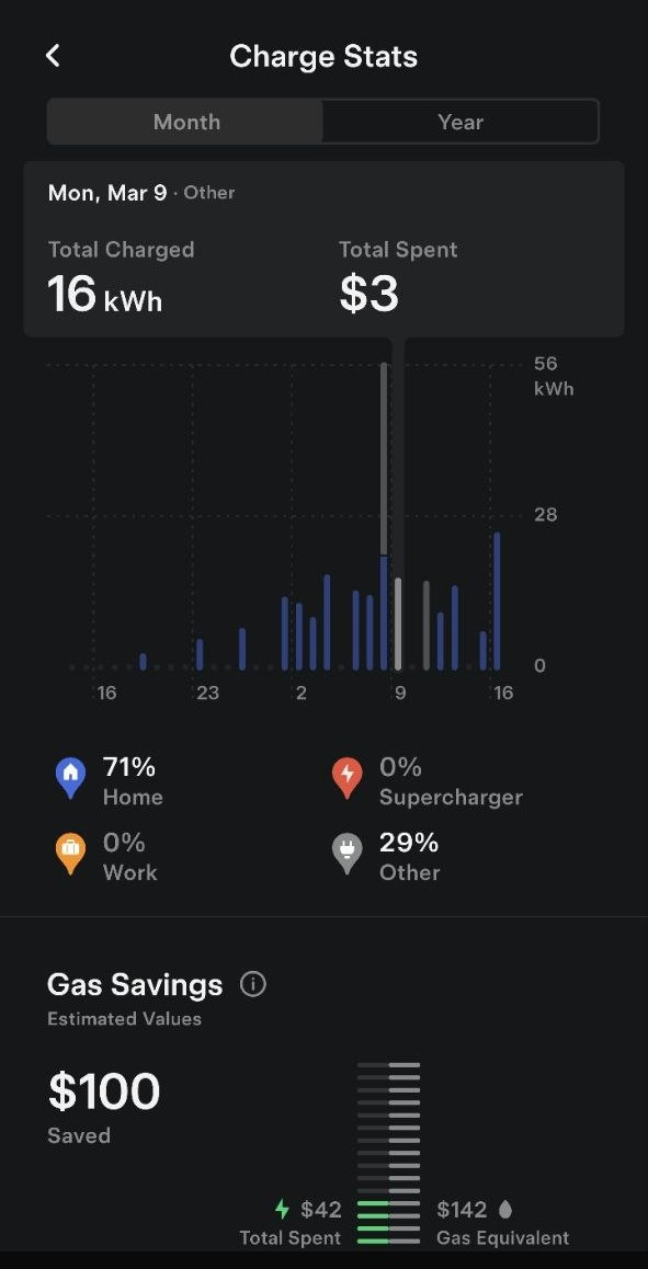 Numitorul comun al tuturor deplasărilor lungi este utilizarea rețelei Supercharger, iar la destinațiile temporare fie încărcare la hotel/pensiune, fie la locul de muncă, acolo unde a fost disponibilă.