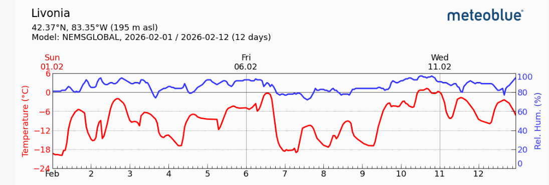 In continuare temperaturi negative. Sursa: MeteoBlue