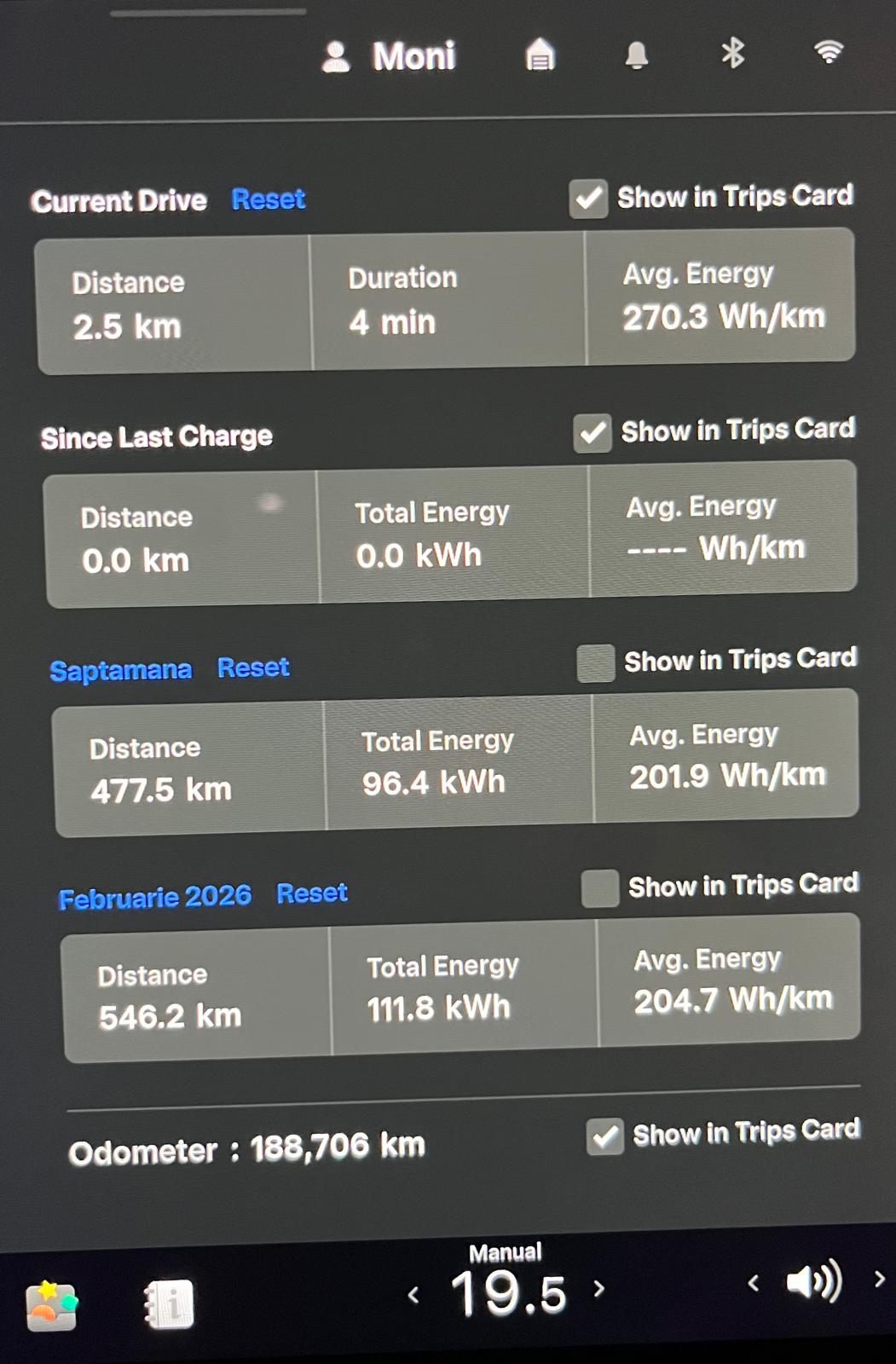 În weekend am participat alături de Cristian (ID7, Brașov) la #RO1000Challenge. Mașina s-a comportat impecabil. Am avut un timp total de condus de 12 ore 46 minute, cu un consum mediu de 19,6 kWh/100 km.