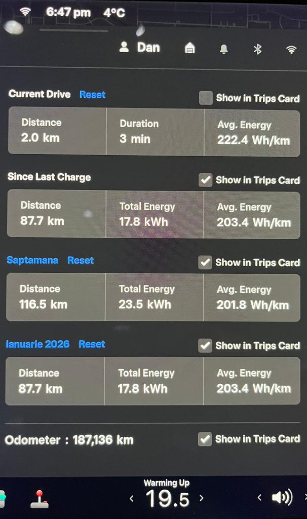 Consumul mediu 20,2 kWh/100km nu spune mare lucru, fiind afectat de drumurile foarte scurte și vremea rece.