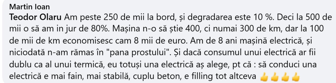 Partea cea mai bună a dialogului este că o serie de proprietari EV, cu mulți km la bord, au adus argumente în favoarea fiabilității electricelor.