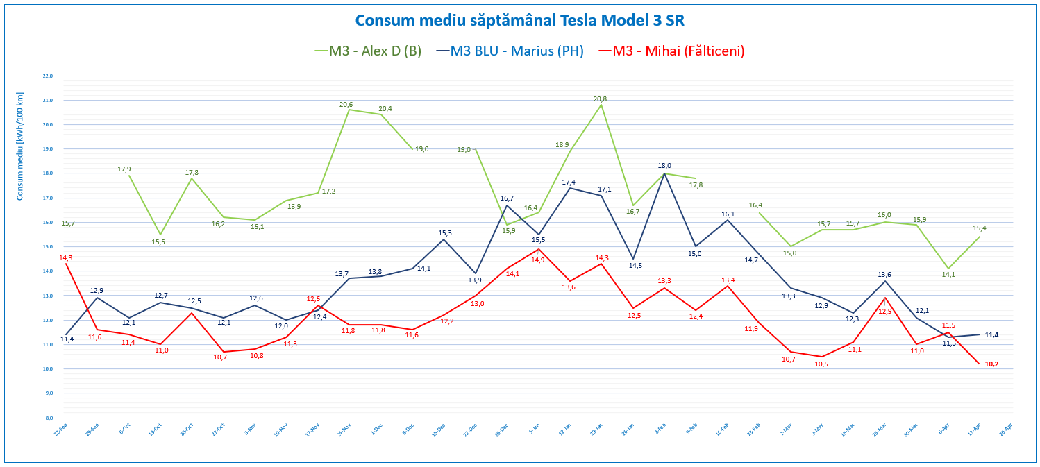 Săptămâna a avut mai puține deplasări, în principal din cauza vacanței școlare, dar rămâne un exemplu realist de utilizare zilnică a unui vehicul electric.