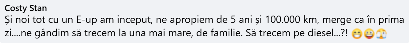 MULȚUMIM Ruben și așteptăm alte exemple, care să îndepărteze teama de necunoscut și să încurajeze adoptarea mobilității electrice, ca antidot la creșterile prețului carburanților, a zgomotului și poluării din aglomerațiile urbane.
