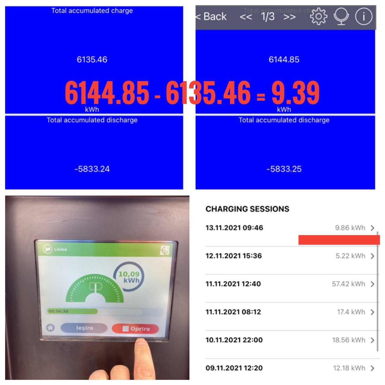 – Am făcut un calcul extrapolând de la o încărcare de 10 kWh – Kaufland zice ca am tras 10.09 kWh din stație, Car scanner (prin diferență) zice 9.39 kWh, Tronity zice 9.86 kWh. Probabil diferența între ele este de la cuantificarea diferită a pierderilor, altfel nu îmi explic. SOC a variat cu 16.85 puncte procentuale (SOC display, care se raportează la capacitatea netă) sau 15.2 puncte procentuale (SOC BMS care se raportează la capacitatea brută).
