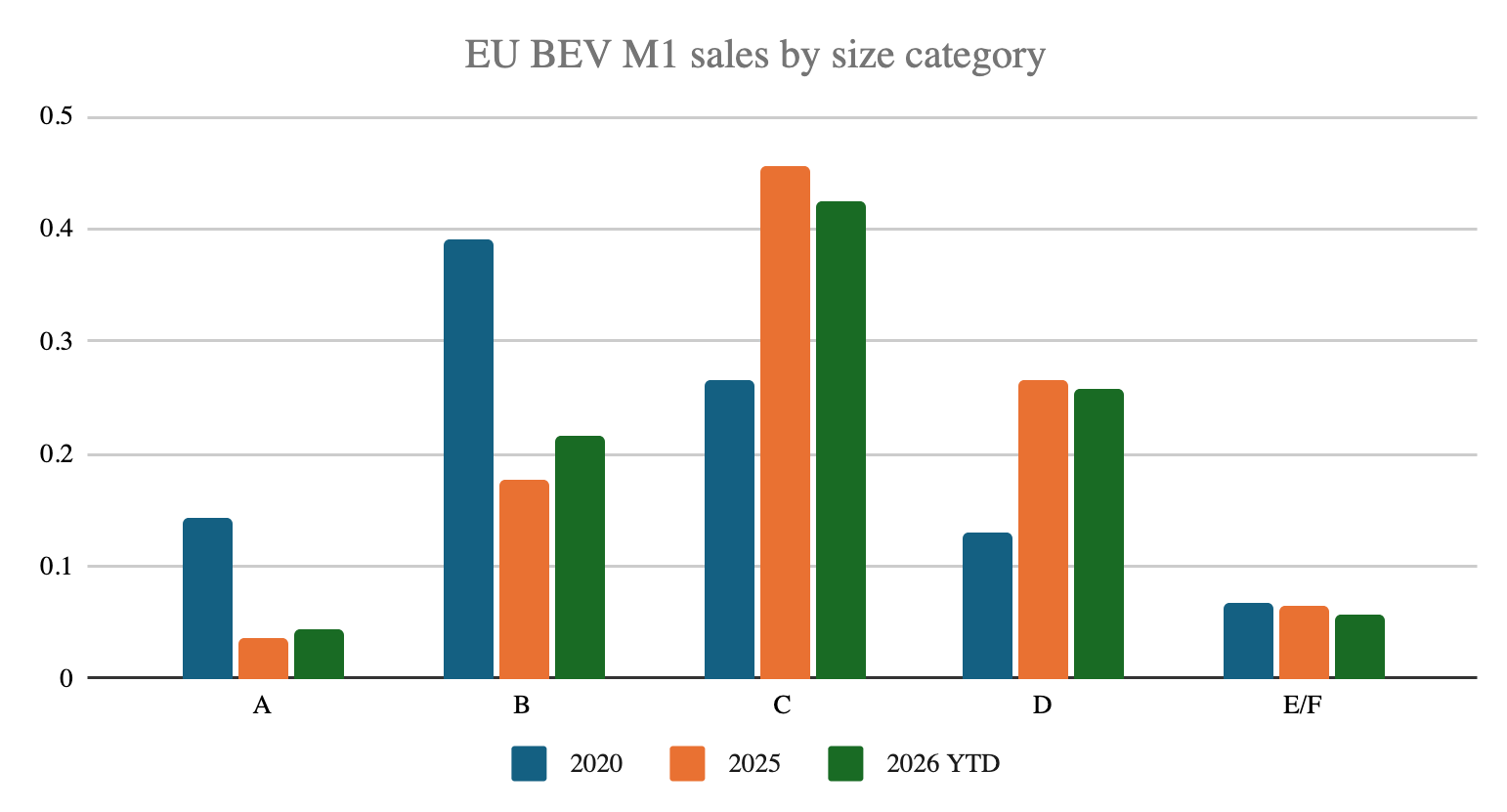 În graficul de mai sus se poate observa cum s-a schimbat raportul între mașinile de clasă mică și SUV-uri în ultimii 5 ani, aici o parte din vină având și producătorii care aleg să vândă mașini mai mari, care aduc la rândul lor un profit mai mare.