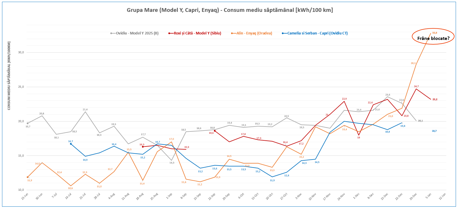Da, a venit „iarna pe uliță,” de aici și manifestările mai ciudate ale mașinii, mai ales cele legate de consum. Ar putea fi parțial și efectul frânelor blocate uneori?