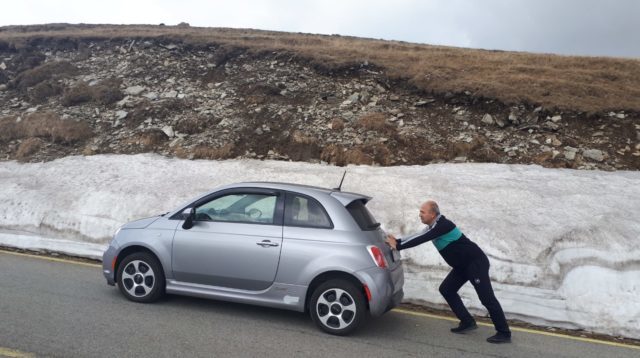 Momentul a sosit in ultima duminica din luna mai si Marian, impreuna cu fiul sau, au pornit din Bals spre crestele Carpatilor cu Fiatul 500 electric.