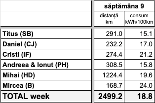 Săptămâna #9 ne aduce, cum am zis și mai sus, picături noi de la Mircea. Le-am lăsat pentru final, pentru simplul fapt că este un raport complet. Teste, context și multe altele. Cu un consum „de entuziast”, care se va regla după câteva săptămâni.