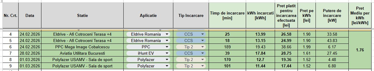 - Încărcări: 41.06 kWh (21.51 kWh din PV, 19.55 kWh din retea – PPC)