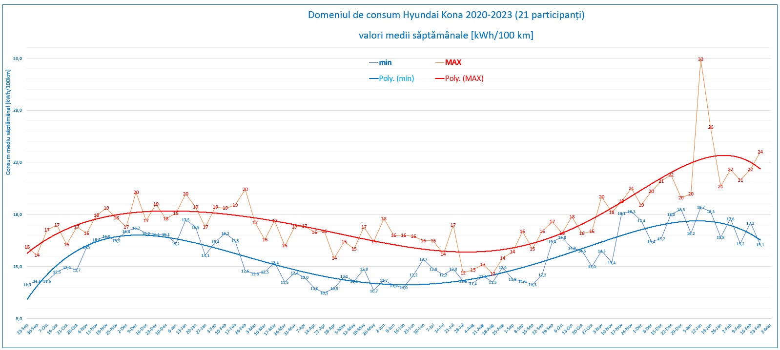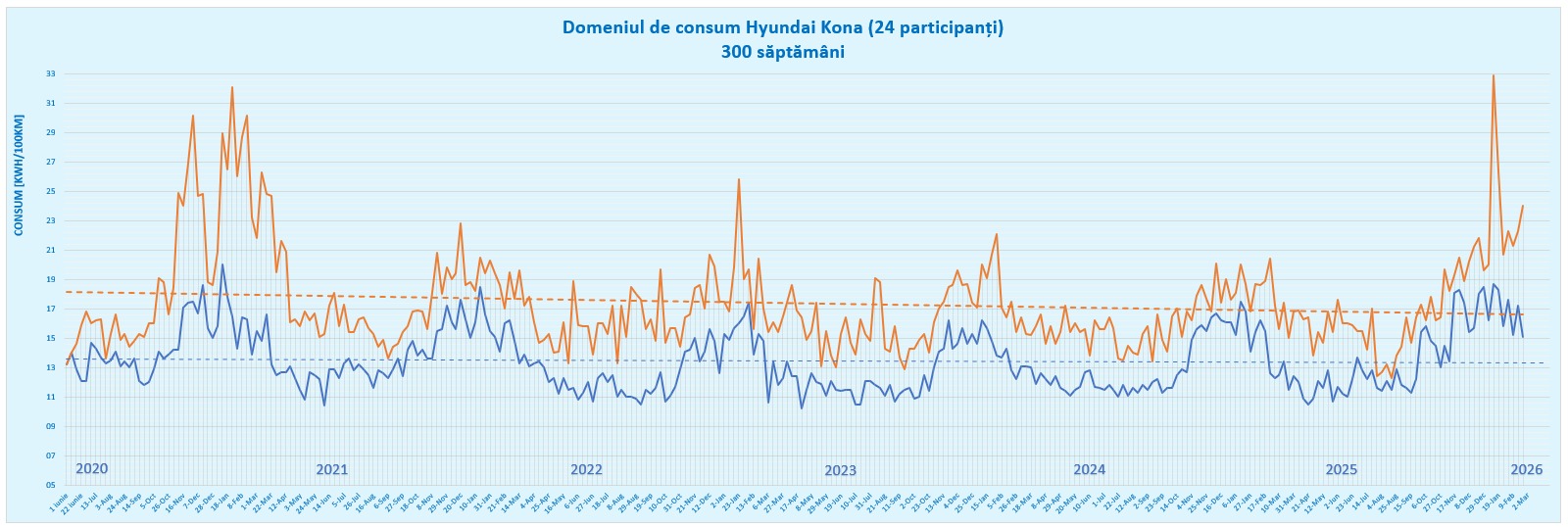 Înțelegerea conviețuirii cu o mașină electrică are nevoie de consecvență și dedicație. Astăzi atingem pragul de 300 de perechi de picături pe graficul domeniului de consum. 24 de participanți au picurat săptămânal aceste date din care ne putem extrage fiecare concluziile necesare.