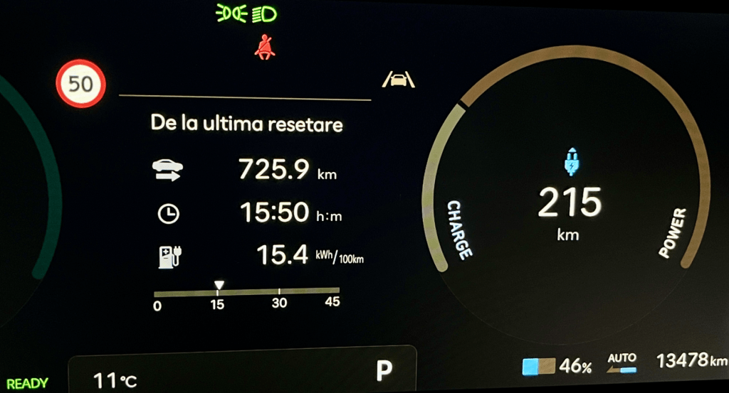 Am început săptămâna cu 6391 km în bord și am încheiat-o cu 6541 km. Am parcurs 150 km în regim urban. Consum mediu: 15,8 kWh/100 km.