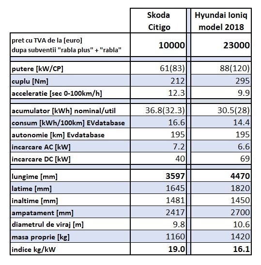 Mai intai pretul. Dupa subventiile „rabla plus si rabla”, la mai putin de jumatate din pretul unui Ioniq model 2018, care nu se mai comercializeaza (dar poate fi gasit second hand), Citigo ofera aceasi autonomie reala (conform EVdatabase), sau chiar ceva mai buna, dupa primele noastre masuratori paralele.