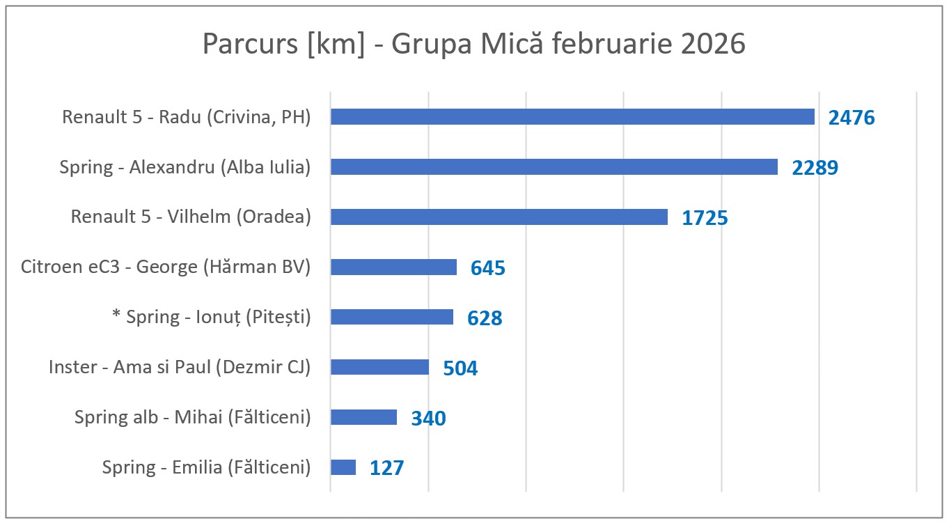 Prin zăpadă și prin ger, iată că ultima lună de iarnă din sezonul cu colți 2025-2026 a trecut. Având consumuri de la 32.5 kWh/100 km – Emilia (parcurs 100% urban cu prichindei la bord) și până la 13.8 kWh/100 km – Ionuț (navetă București – Pitești), mașinile au parcurs 8734 km cu costuri din cele mai variate, funcție de sursa de încărcare – stații publice sau sisteme fotovoltaice (atunci când a fost soare).