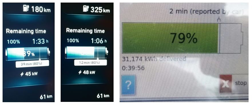 Dupa mai putin de zece minute s-a ivit posibilitatea utilizarii incarcarii rapide CCS, cu ajutorul careia Kona a ajuns de la 40% la 80% incarcare in aproximativ o jumatate de ora.