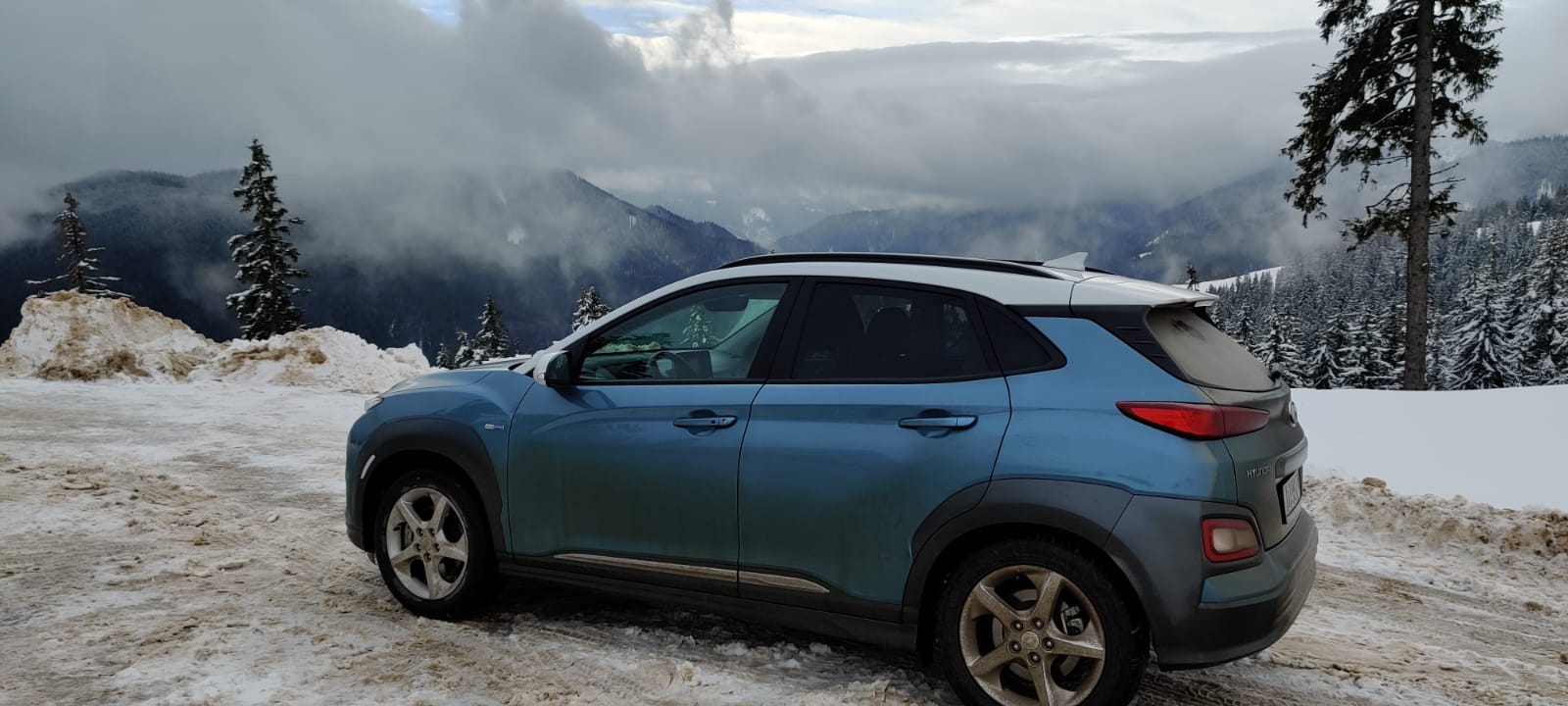 Drumul a fost lung și întortocheat. Prin Transilvania sunt cam 680 km pănă la Casa Octavian din Sucevița, iar ziua de iarnă e scurtă, traficul cumplit și doar câțiva pași de autostradă, înainte de Târgu-Mureș. Autonomia nu mi-a dat niciodată mult de furcă în Kona. Sunt peste 400 km de acasă până la locul de popas, dar am fost 4 adulți în mașină, iar vremea destul de rece și umedă, la care mai adaug și diferența de altitudine de câteva sute de metri au impus o oprire de realimentare. Putea fi și la Rompetrol, la Gura Văii pe Valea Oltului, stație deschisă de curând, dar putea fi și la Tălmaciu ori pe centura Sibiului, la oricare dintre cele două stații Mol din zonă, fără să mai pun la socoteală stațiile rapide din Sibiu, însă s-a nimerit ca stația de la Kaufland, din Râmnicu-Vâlcea să fie liberă.