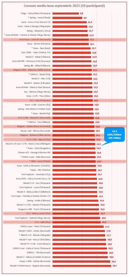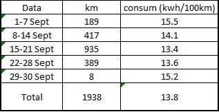 - Consum mediu: 13.8 kWh/100km (cel mai mic din acest an);