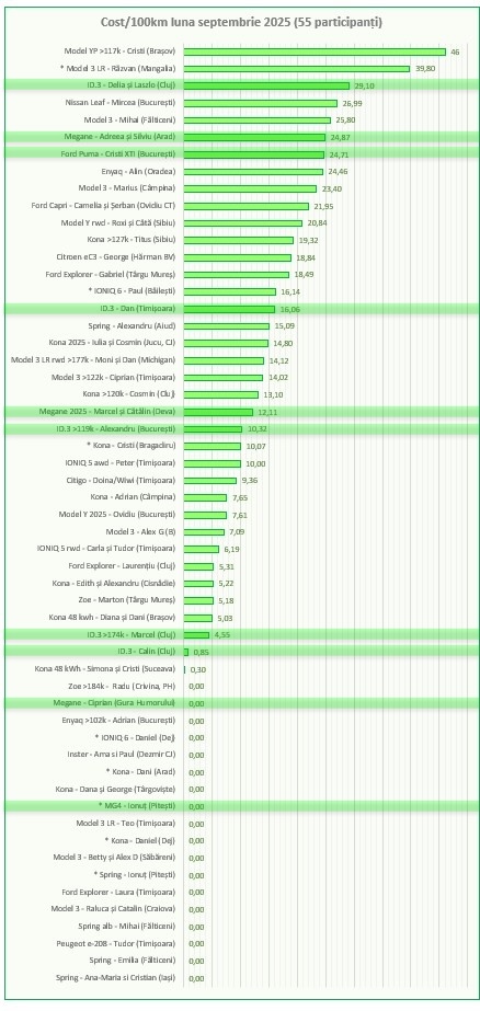 - Costul/100km: 10.32lei/100km (în realitate, 0 cu fotovoltaicele, dar contorizez așa până la amortizare);