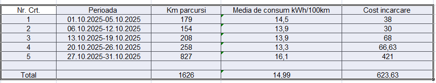 - Cost total încărcări 134 Ron, 14,24 lei/100 km parcurși