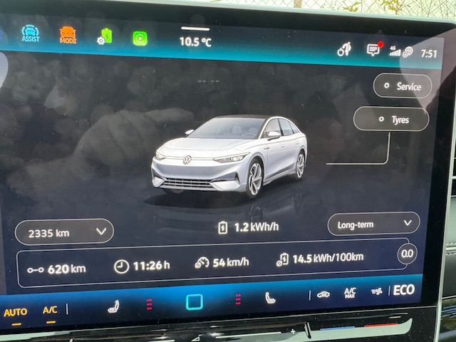 Consumul mediu la această călătorie asta a fost de 15.2 kWh/100km, deși după drumul în urcare până la Târgoviște aveam 18.1 kWh/100 km (am mers constant sub 100km/h și traficul a fost aproape inexistent).