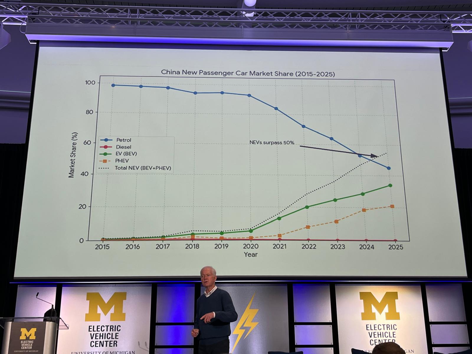 Așa cum a subliniat jurnalistul veteran John McElroy în prezentarea sa, singurul segment în creștere este NEV – New Energy Vehicle, așa cum a denumit China, liderul mondial al electrificării, cu un singur acronim, categoriile: