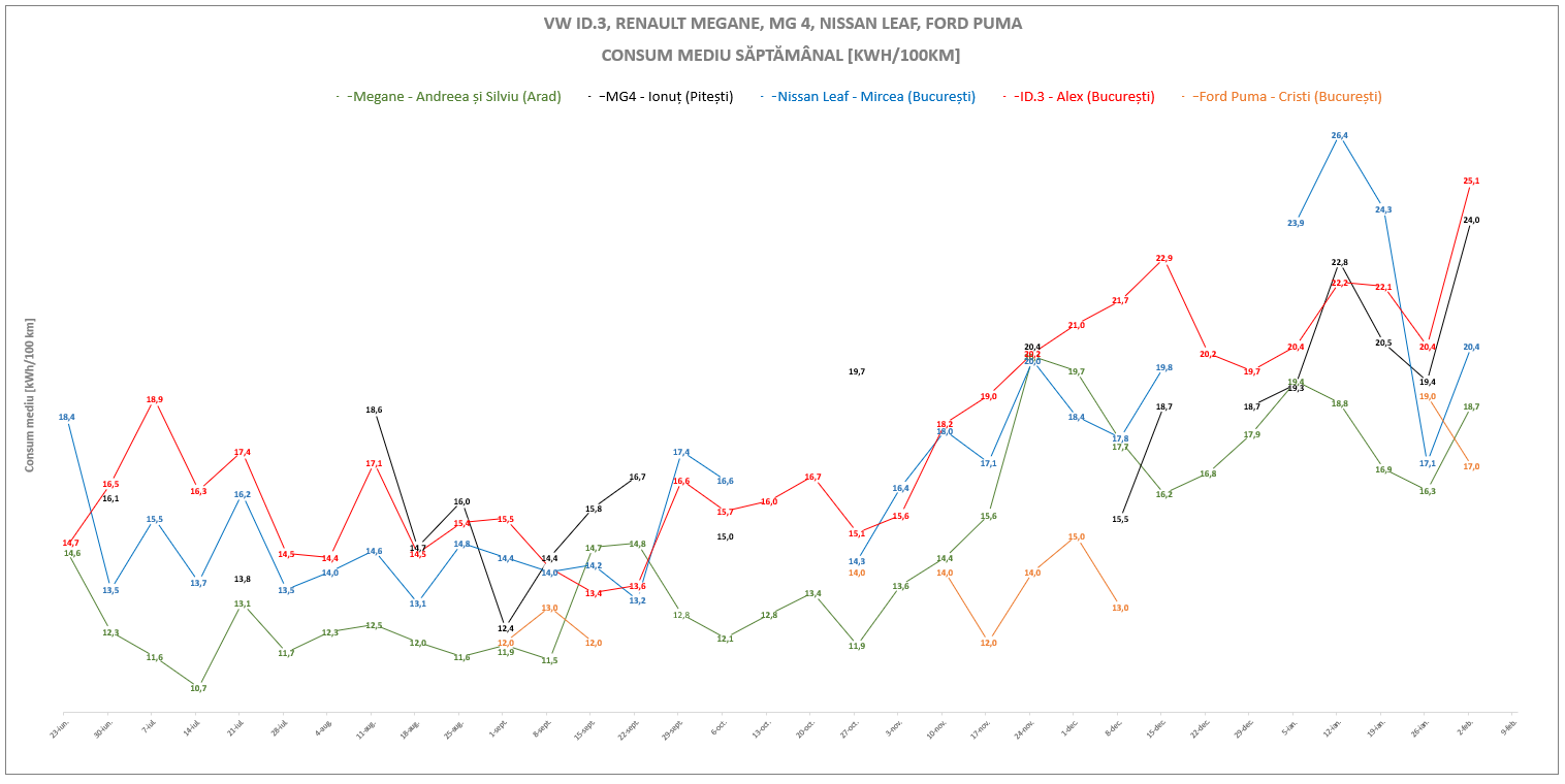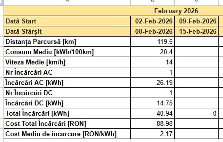 În săptămâna 2-8 februarie am parcurs 125 km cu un consum mediu de 25.1 kWh/100km.