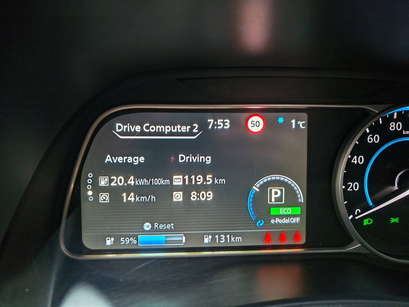 În prima săptămână din februarie, Leaf-ul s-a plimbat „clasic” doar prin București, unde a adunat 119,5 km, cu un consum tipic de iarnă, de 20,4 kWh/100 km. Am avut o încărcare AC și una DC, folosind adaptorul CCS–CHAdeMO, iar totul a mers perfect, fără probleme tehnice sau alte surprize neplăcute.