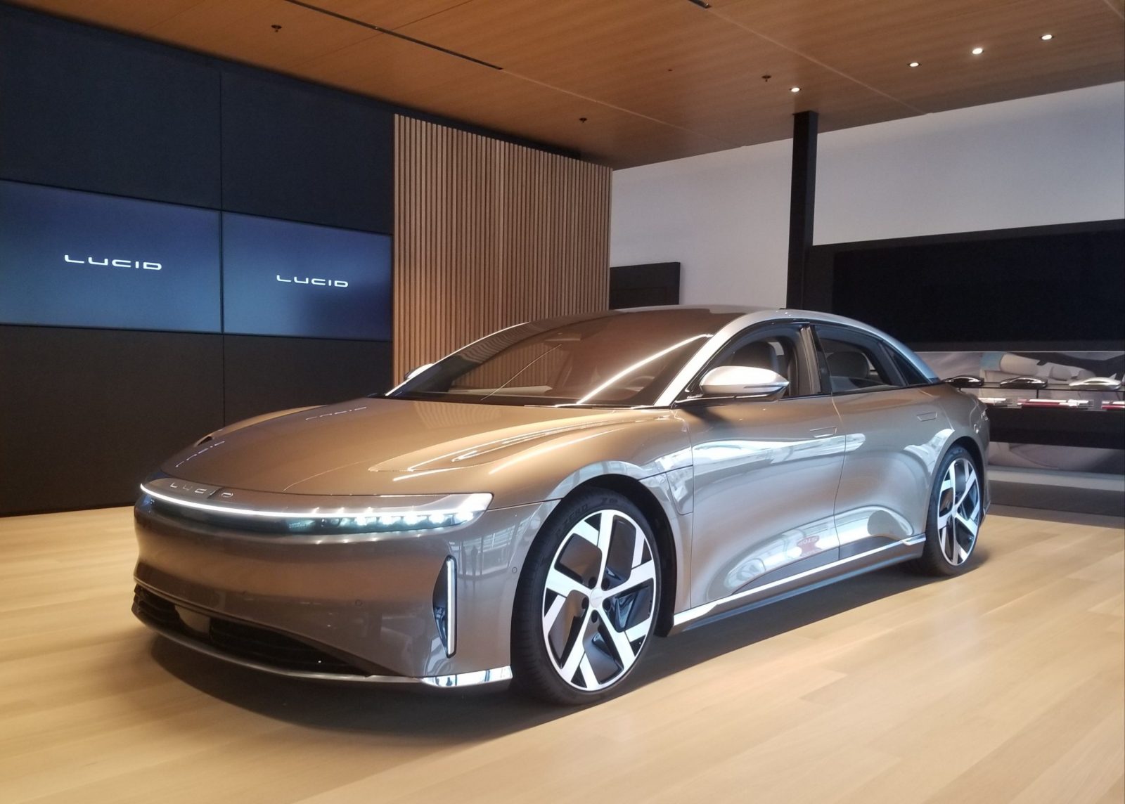 Centrul de atracție este un exemplar Lucid Air, din seria de pre-producție, care trebuie să recunosc că arată mai bine în realitate, decât in cele mai inspirate imagini publicate până în prezent.