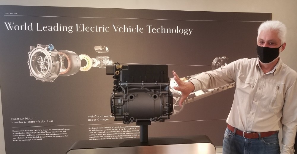 Am fost întâmpinați cu foarte multă amabilitate de Leo Ashner, expertul tehnic alocat întâlnirii noastre, fiindcă am specificat în solicitarea de vizită că nu sunt interesat (deocamdată) de achiziție, ci de un deep dive al tehnologiei utilizate pentru Lucid Air. Echipa de marketing o prezintă ca fiind superioară celei existente în prezent pe piață și subliniază afirmațiile cu recorduri de accelerație, timpi pe circuite californiene și alte astfel de „performanțe” mai rar utilizate de majoritatea cumpărătorilor.