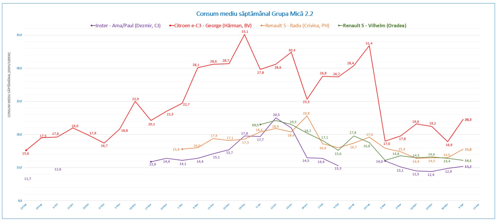 - Consum mediu al perioadei: 15.8 kWh / 100 km