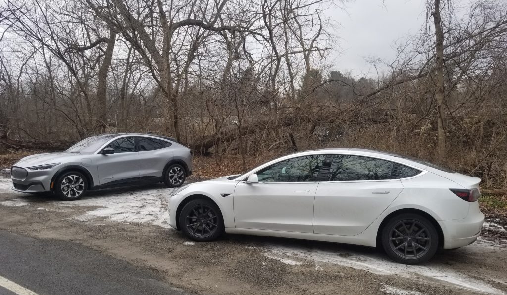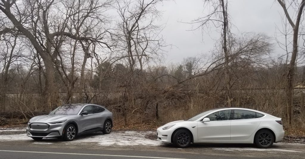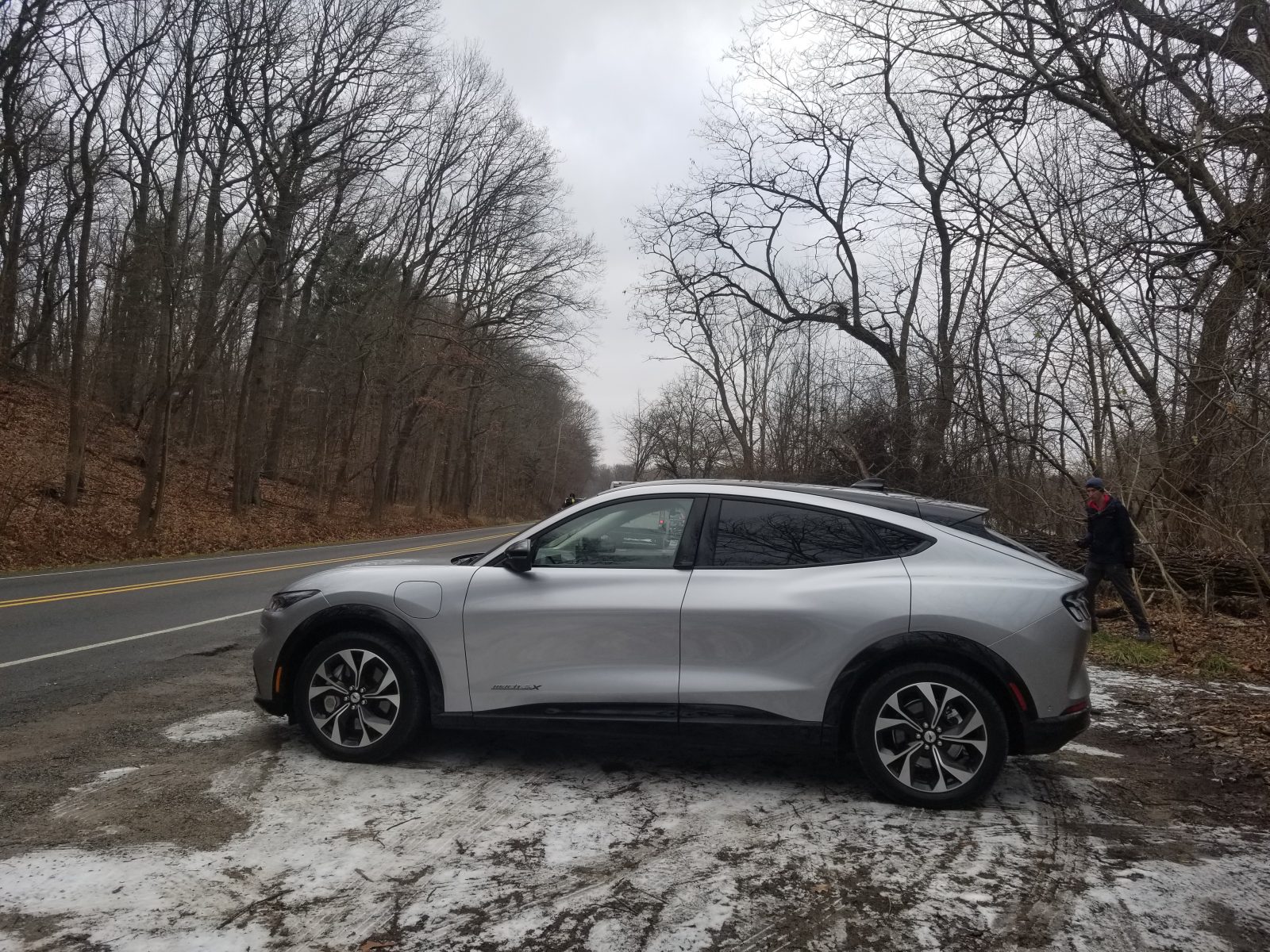 Așa se face că în acest sfârșit de săptămână am pornit cu TM 3 la vânătoare de Mach-e spre Hell, Michigan. După nici 30 de minute am dat de primul exemplar întâlnit pe șosea și trebuie să recunosc că arată mult mai bine decât în standul înghesuit de la CES, deși astăzi a fost o zi urâcioasa, cețoasă, rece și umedă.