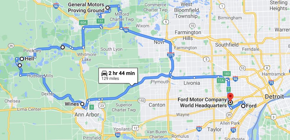 Pentru cine cunoaște zona extrem de plată, cu o rețea de sosele ce se intersectează într-un caroiaj de tablă de șah la 90 grade din jurul Dearborn-ului, unde este sediul global al firmei Ford, este ușor de ghicit că majoritatea jurnaliștilor vor porni cu mașinile de test spre orașul universitar Ann Arbor, pe valea râului Huron și de acolo printr-o zonă de parcuri pitorești spre Hell, Michigan, unde drumurile au căte o combinație de viraje și căte un mic deal.