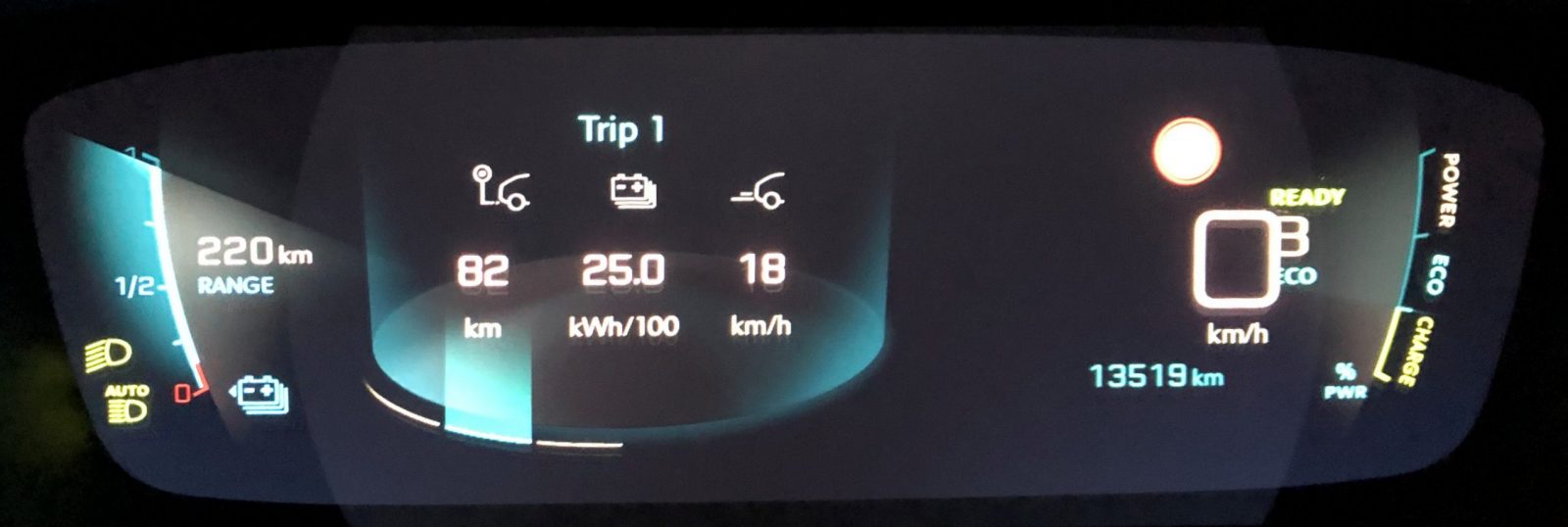 Consumul Peugeot-ului a fost de 25 kWh/100 km pentru cei 82 km parcurși cu o viteză medie de 18 km/h.