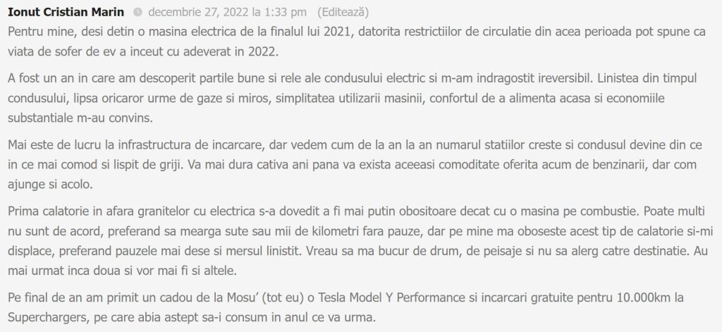 Scrieți-ne la rubrica de comentarii, în media socială sau pe adresa office@electromobilitate.com. Vă mulțumim pentru colaborare.