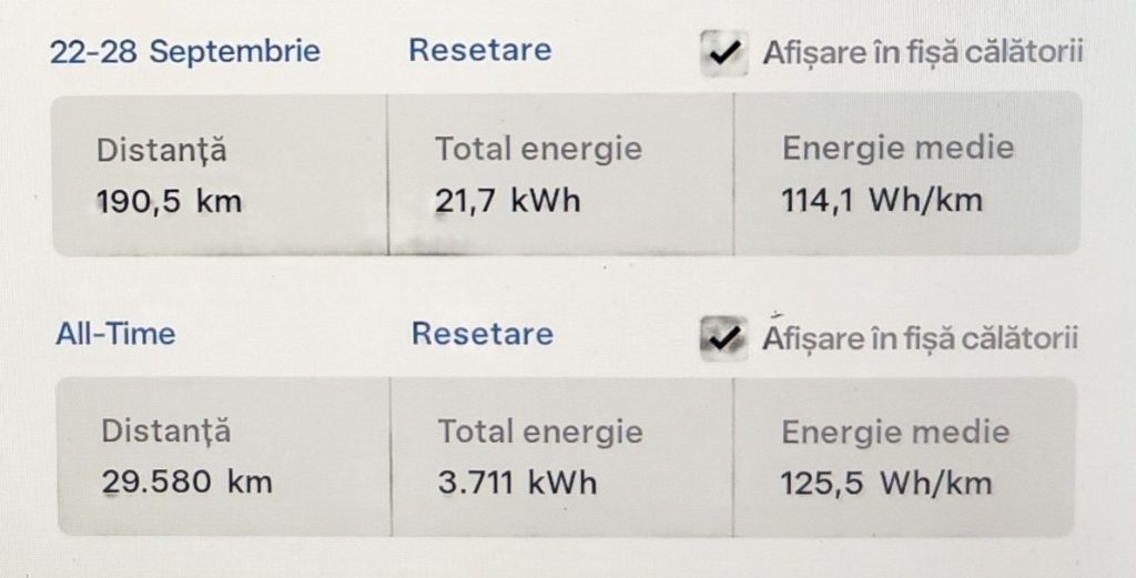 Consumul este în creștere lină continuă începând din 25 august, dar nimic îngrijorător deocamdată: 14,8 kWh/100km.