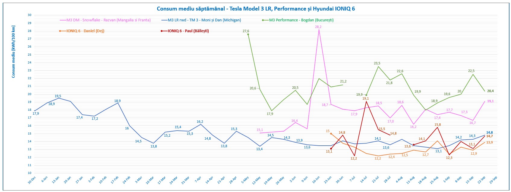 Sunt multe informații interesante culese de proprietarii-voluntari participanți la proiectul Electromobilitate cu IONIQ 6 și cinci variante de Model 3: