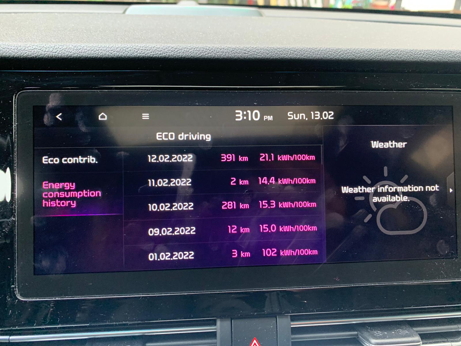 Cu recomandarea „Ignoră cei 102 kWh/100 km pentru 3 km din 1 februarie, când am folosit mașina pe post de generator„, Teo ne trimite o imagine de la bord care indică o cu totul nouă rutină săptămânală față de anul trecut.
