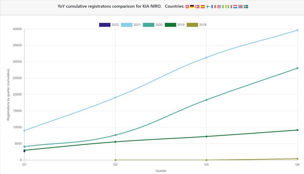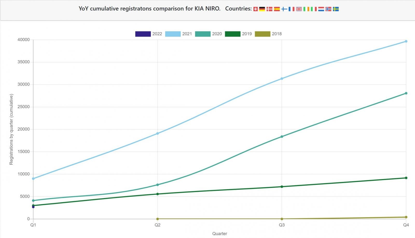 Deși în România nu vom întâlni prea multe exemplare, în Europa de vest s-au înmatriculat aproape 80.000 de Niro în perioada 2018-2021, iar anul acesta Niro este în fruntea clasamentelor din Suedia, Olanda și Spania, chiar dacă în paralel firma coreeană a demarat livrarea noului EV 6, construit pe platforma E-GMP care permite încărcări foarte rapide (printre multe alte calități).