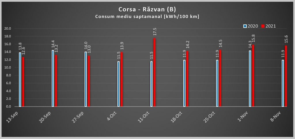 Fiindcă Răzvan poate încărcă acasă, consumul ceva mai ridicat nu devine o problemă de găsire a unei stații publice libere și nici de costuri exagerate, Corsa excelând prin consumuri rezonabile pentru categoria sub-compactă.