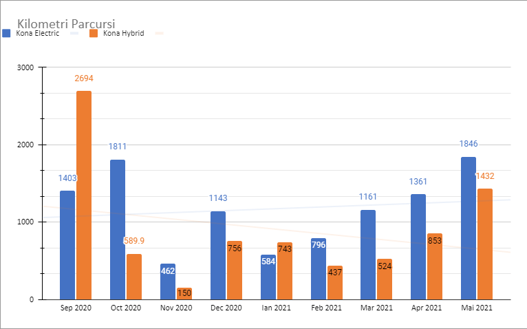 Luna aceasta a ieșit costul de 7.2 RON/100km, mult mai mic decât lunile trecute, pentru că modelul electric a beneficiat de multe încărcări gratuite, la birou în special și câteva la Kaufland sau la stațiile publice din Cluj-Napoca.