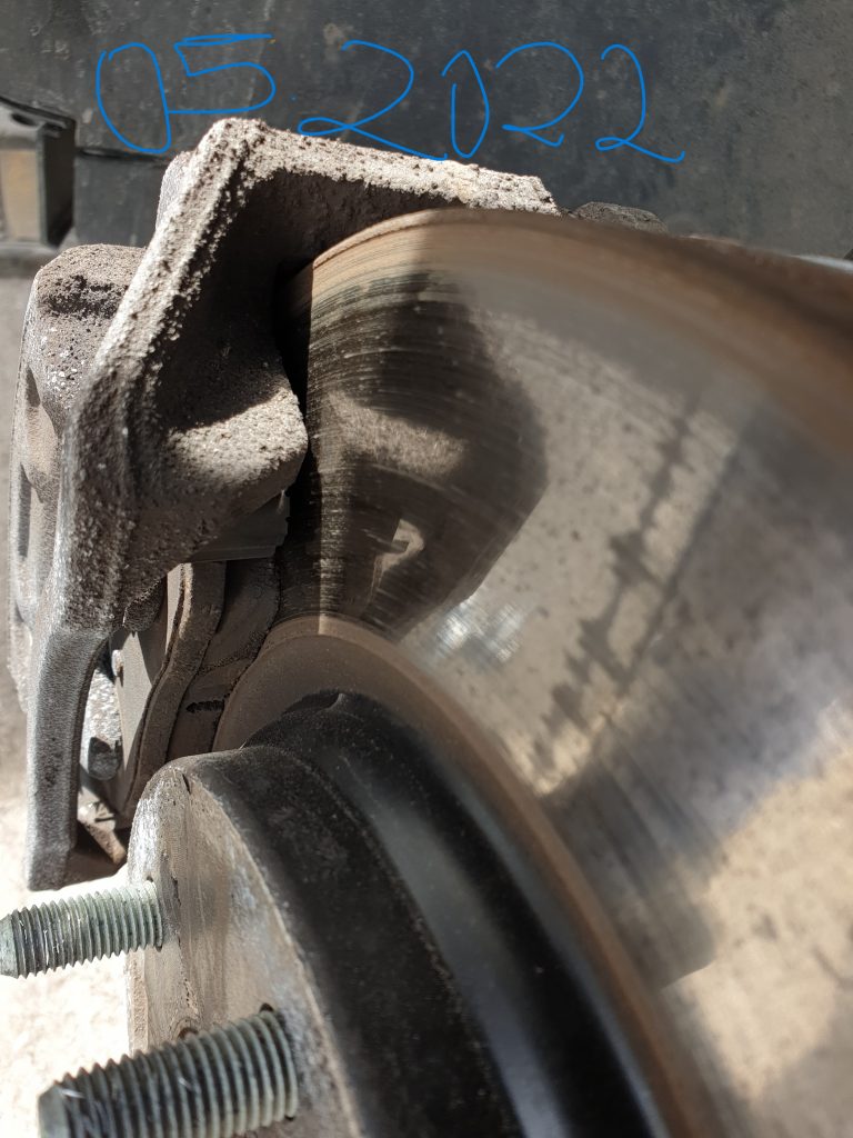Mai jos puteți vedea cum arată discurile și plăcuțele originale, după 100.000 km la o Kona electrică. Uzură cam de 10%.