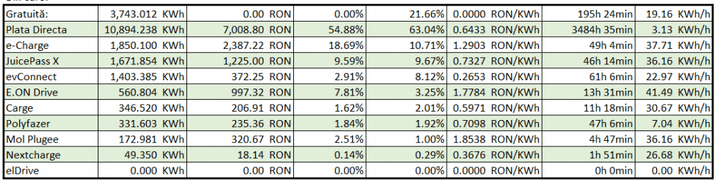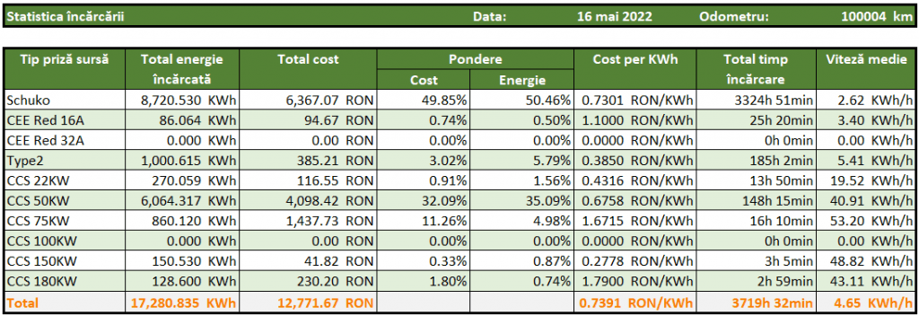 – foarte importante sunt si incarcarile cu energie, ca daca nu le poti face intotdeauna acasa cu 0,7 lei/kwh si esti nevoit sa alimentezi cu 2,49 lei/kwh, se cam schimba calculele initiale.