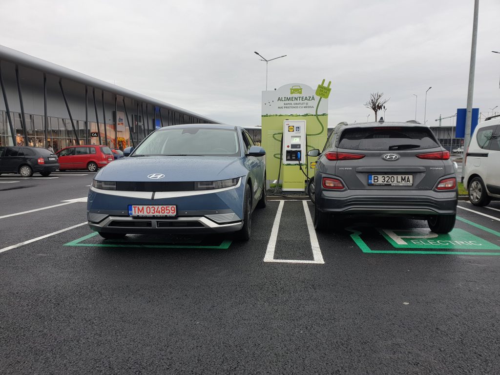 După un mic dejun copios, maramureșean, am zis să oferim și mașinilor doza necesară de energie pentru parcurgerea ultimei etape – și cea mai lungă de până acum. Așa că ne-am dus la Lidl să încărcăm.