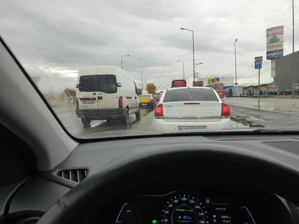 Numai bine trec de Țigmandru și începe neică o ploaie de zici că era iulie… asfalt lucios, bălți prin casiurile formate de camioane, faruri care băteau prin toți copacii numai pe drum nu, mulți idioți cu led-uri în loc de halogene…. o plăcere… Însă recunosc că asta a fost o ocazie numai bună pentru a analiza raporturile sociale ale șoferilor din România.