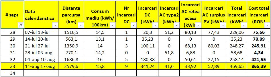 Trecem printr-o perioadă în care ne bucurăm încă de libertate, vacanță. Astfel folosim mașinile ocazional pentru cumpărături sau alte drumuri scurte spre Cluj-Napoca. Am încărcat exclusiv energie din sistemul fotovoltaic, 79 kWh zic datele preluate din aplicație. Consumul mai mare pentru ca am lucrat în mașină pe perioada cât copii au avut activități în Cluj-Napoca.