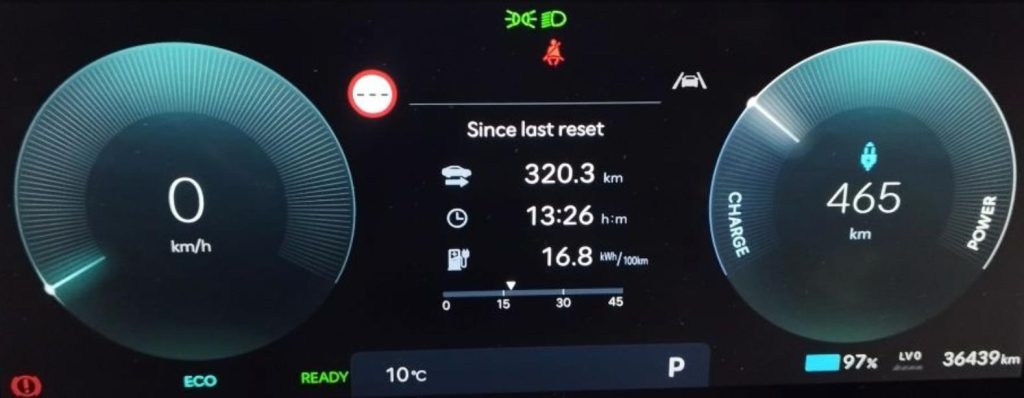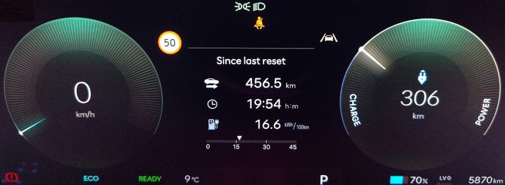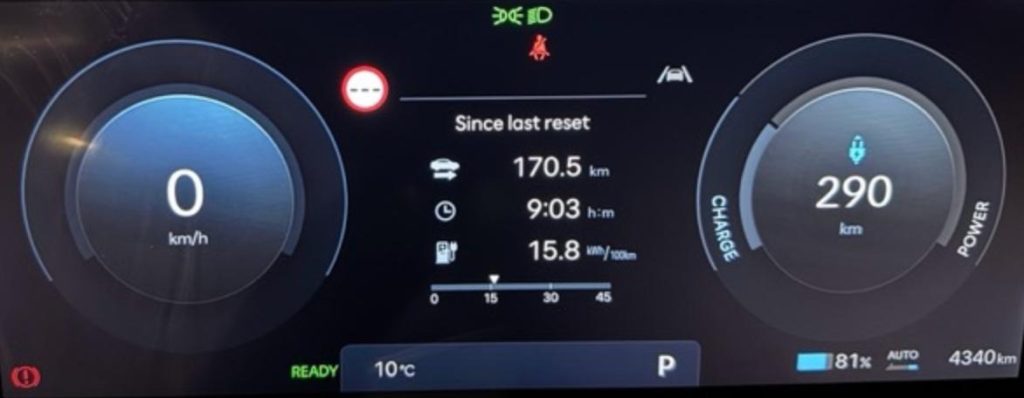 PHEV-ul cu așa zisă autonomie de 80 km, iarna devine cam 40-50 km cu multiple opriri. Adică 13 kWh consumă PHEV-ul pentru același drum pe care Kona îl face cu 6 kWh.