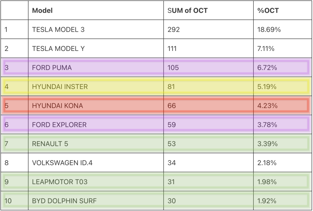 Altceva doream să subliniez, anume faptul că avem mai sus în acest top 4 mașini de Grupa Mică (Inster, R5, T03 si Dolphin Surf), și 2 de Grupă Mijlocie (Puma și Kona). Asta spune multe despre necesitățile cumpărătorilor și despre lipsa de viziune interes financiar a celor care produc și vând cu excepția SUV-urilor mari grele și scuuumpe.