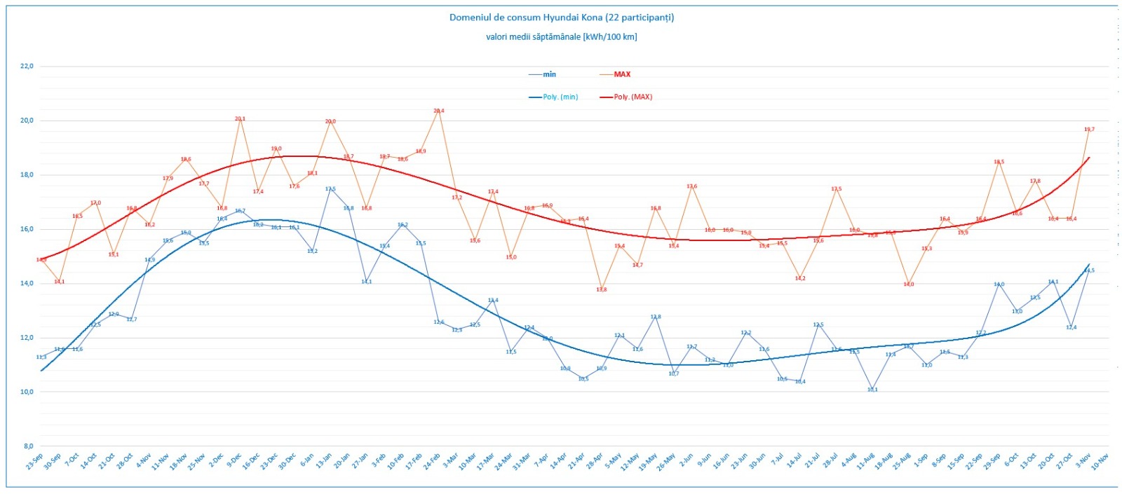 O săptămână mai răcoroasă care ne duce spre o medie de consum mai mare. Sub 1.000 km parcurși de cele trei echipaje din subgrupa noilor #konițe, cu o medie ponderată de consum de 16.5 kWh/100 km, destul de bine peste precedenta raportare.
