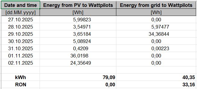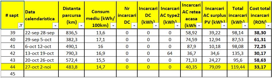 - Energie încărcată: 119,44 kWh (40,35 Hidro + 79,09 PV)