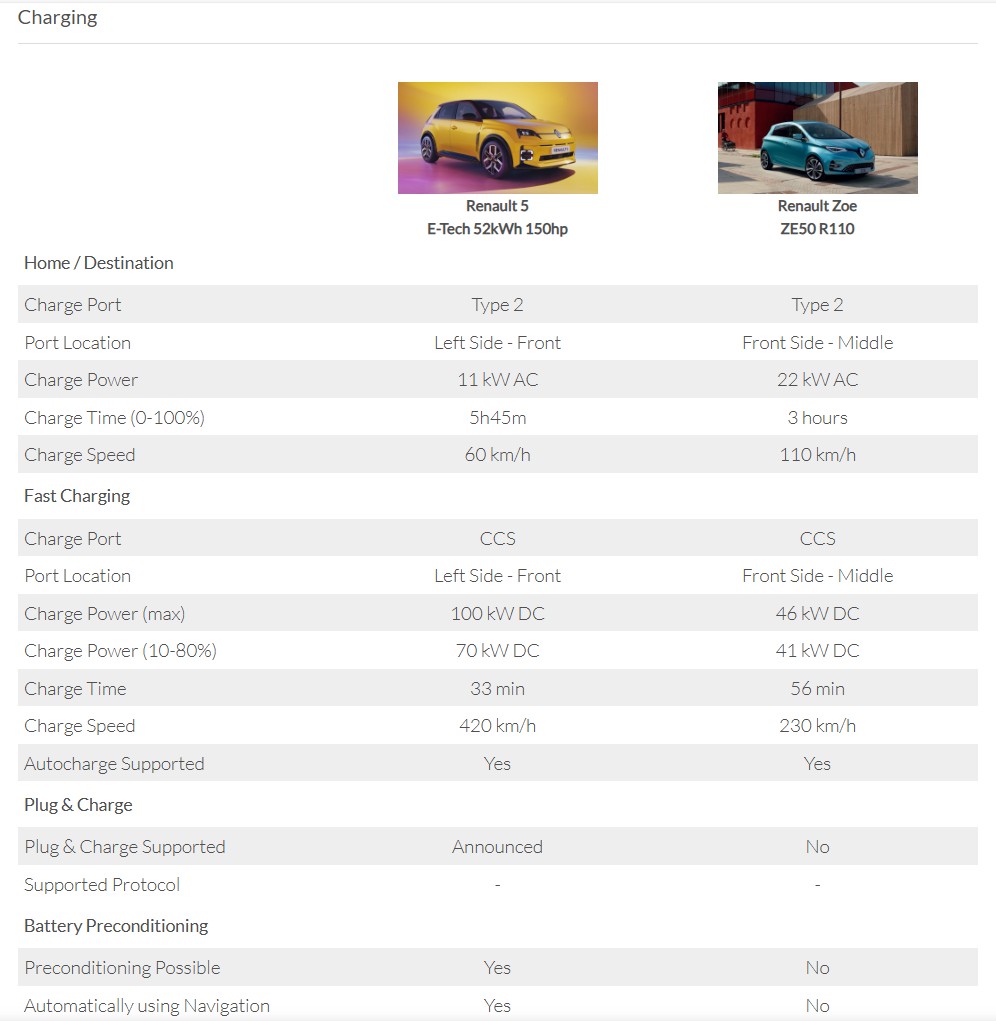 Date comparative pe baza informațiilor furnizate de EV database – compare