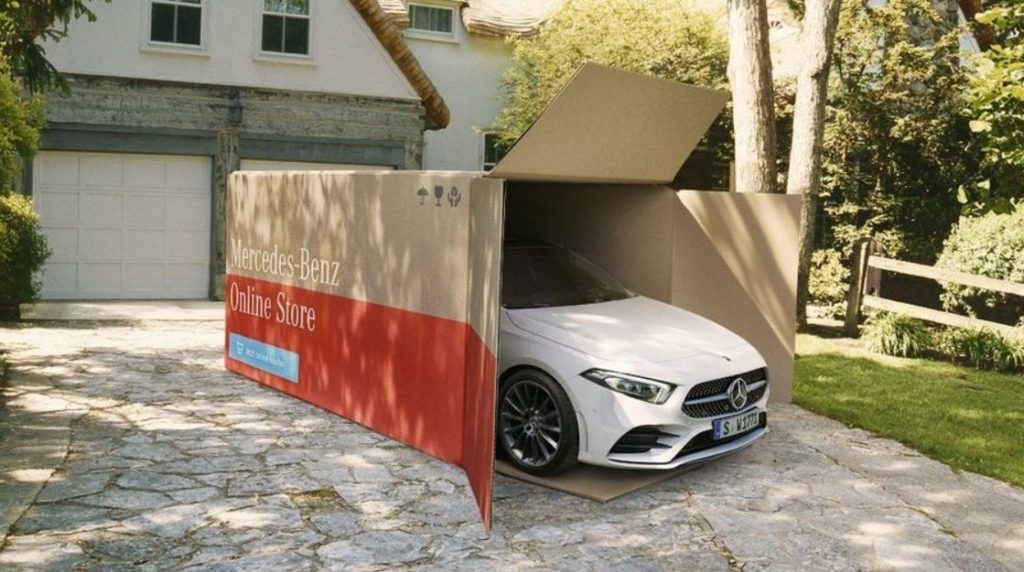 La aniversarea a 120 de ani de la lansarea marcii Mercedes, grupul Daimler aplica o lectie din manualul actiunilor unui start-up temerar, care a intors in ultimii zece ani lumea auto pe dos, anuntand pe pagina de achizitii online, ca livrarea noului automobil se poate face la domiciliu: „Einfach klicken. Wir schicken!”